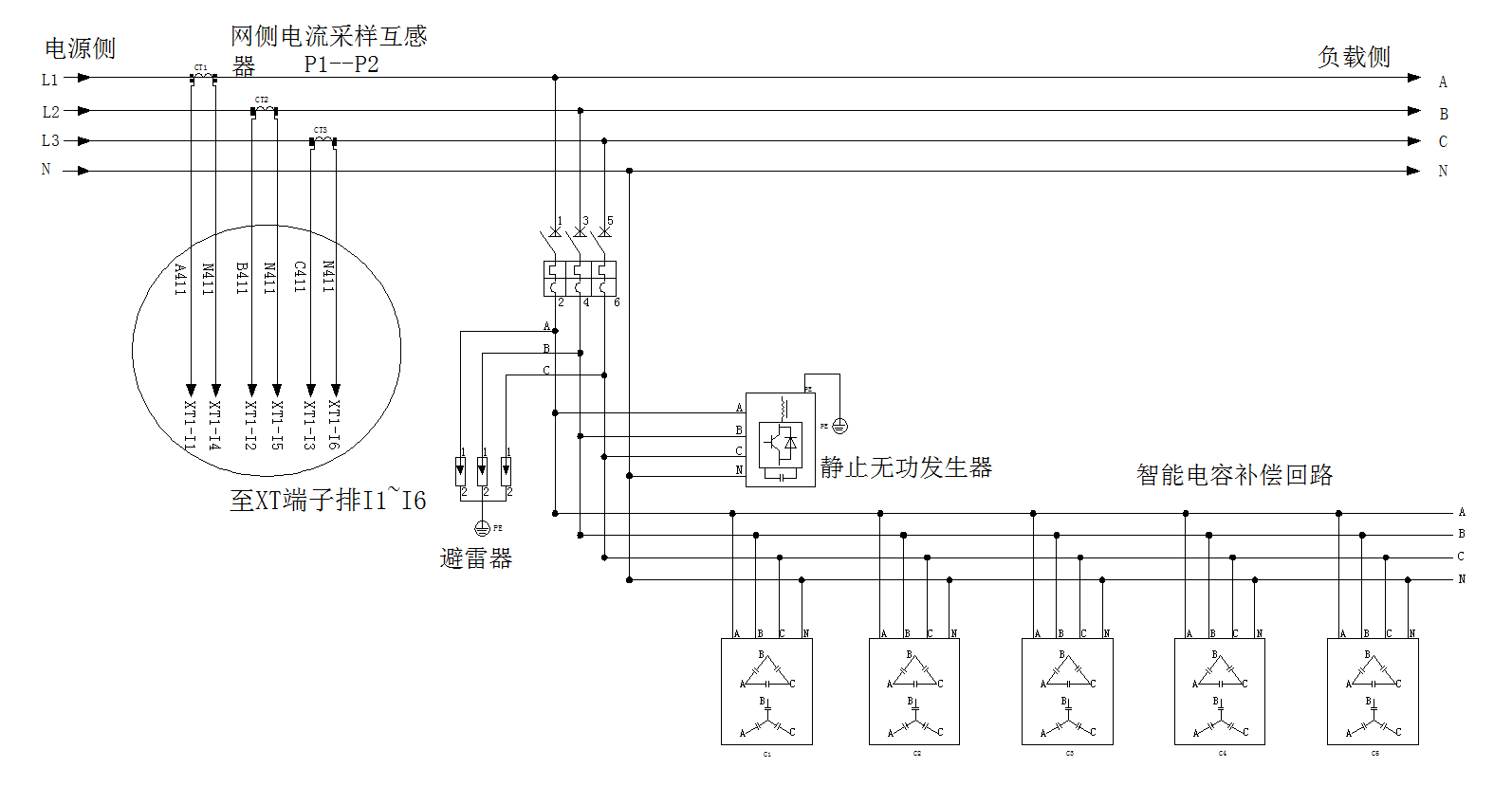 線路調(diào)節(jié):能夠解決系統(tǒng)三相負(fù)荷不平衡的問(wèn)題,不僅不產(chǎn)生諧波,而且能在補(bǔ)償無(wú)功功率的同時(shí)動(dòng)態(tài)的補(bǔ)償諧波;