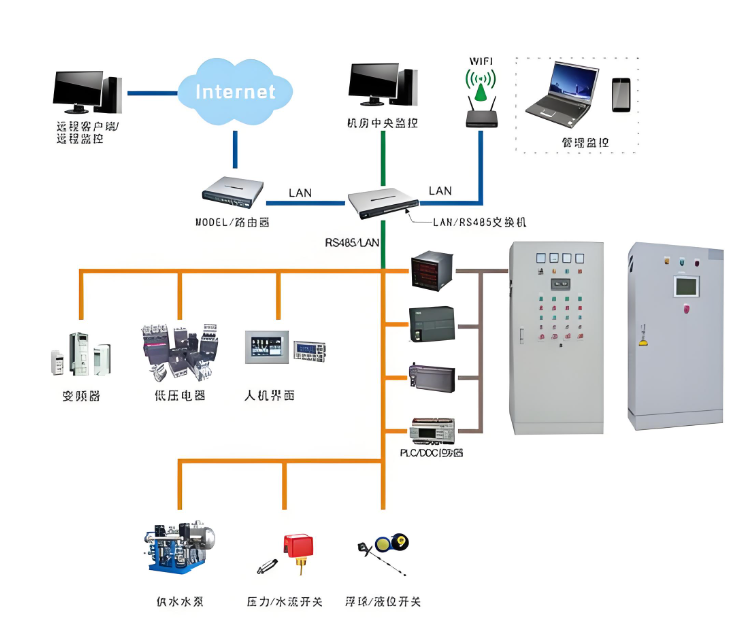 供水設(shè)備是為解決由于壓力不足,無法到達(dá)用戶用水的高度或流量,而專門研發(fā)設(shè)計(jì)的新型環(huán)保節(jié)能的專業(yè)設(shè)備。供水設(shè)備可分以下幾種,水箱供水設(shè)備,無塔供水設(shè)備,消防供水設(shè)備,變頻恒壓供水設(shè)備,通過該系統(tǒng)可實(shí)現(xiàn)對(duì)水泵的開停、主排水管路的流量、水泵排水管的壓力、水倉(cāng)的水位等信號(hào)的實(shí)時(shí)監(jiān)測(cè),并能通過該系統(tǒng)實(shí)現(xiàn)三臺(tái)主水泵的自動(dòng)、手動(dòng)控制并和PLC監(jiān)控系統(tǒng)的聯(lián)網(wǎng)運(yùn)營(yíng),實(shí)現(xiàn)地面監(jiān)控。